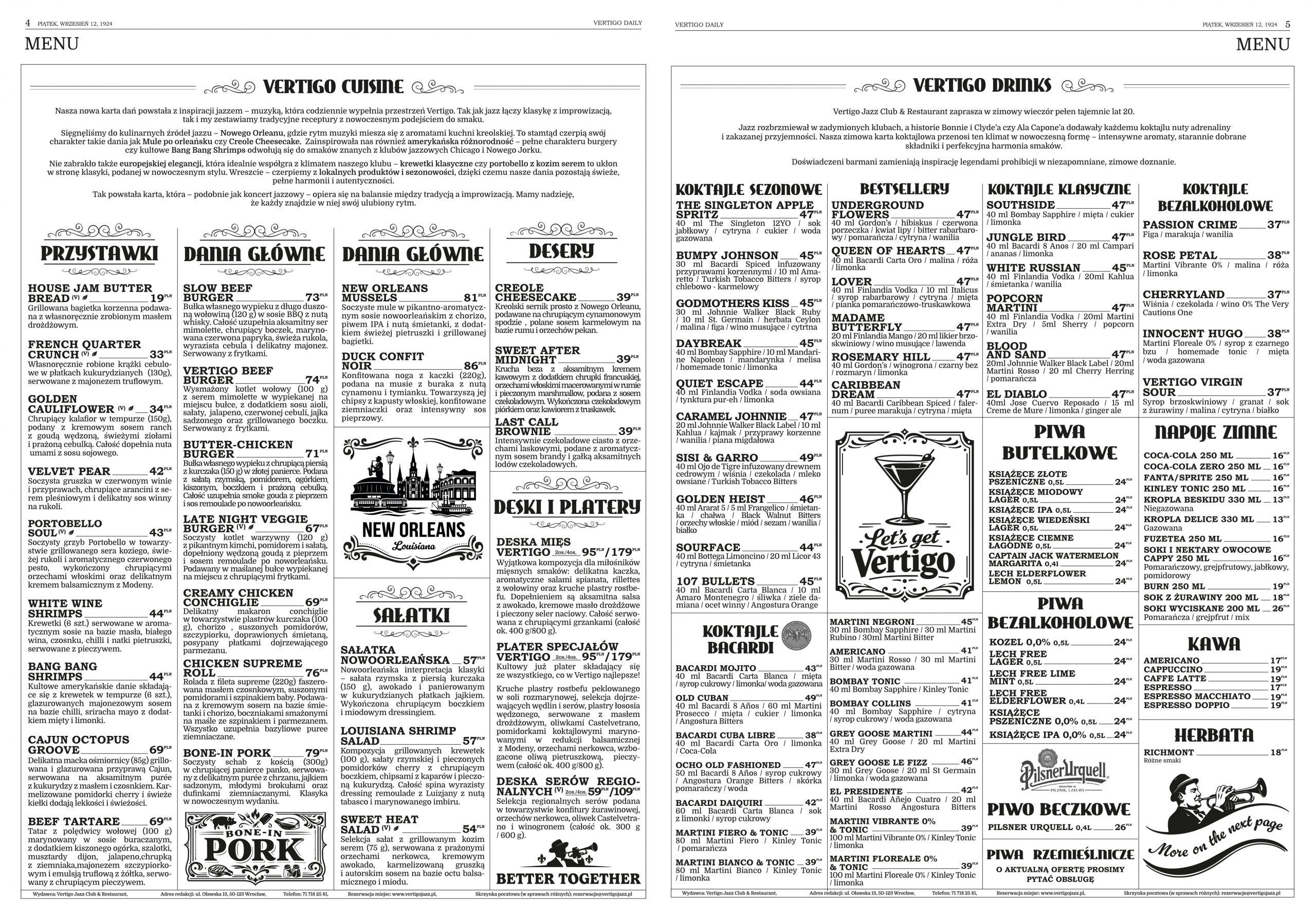 menü vertigo jazz club & restaurant